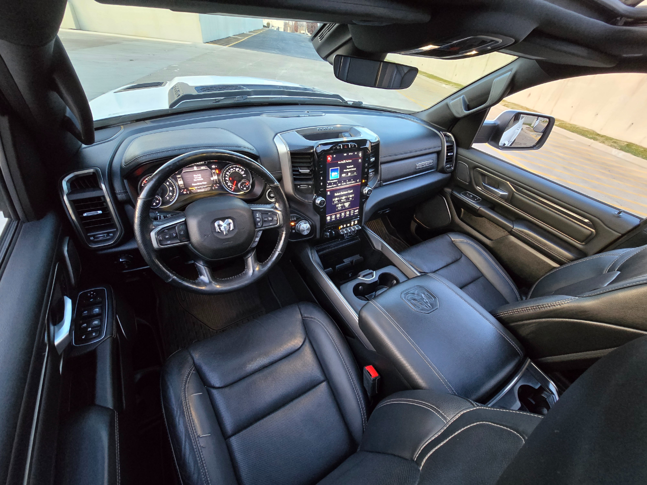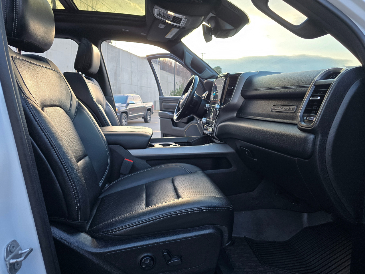 Truck Kings Presents our Custom 2021 “Bright White ”RAM 1500 Sport with 4WD!!**RAM BOX**Features: In this Spacious and Full-size Cabin you will find a Premium Black Leather Interior with Heated and Cool Front Seats, Front Multi-Way Adjustable Seats, Heated Rear Seat, Heated Steering Wheel, An Industry Leading 12 Inch Touch Screen Infotainment System, Bluetooth, a Premium Heart-Pounding Harman Kardon Sound System, Apple and Android Carplay, USB and USB-C Charging Ports, Adjustable Pedals for the vertically challenged individuals, Panoramic Sunroof, Push Button Start, Remote Start, Power Tailgate, Front AND Rear Bumper Sensors with High Definition Back-Up Camera, 360 Camera view, RamBox Cargo Management System and Push Button 4 Wheel Drive so you can adapt to road conditions on the fly. Under the Hood, you will find a 395 HORSEPOWER 5.7L HEMI V8 mated to a Turn Dial Shifted 8-Speed Automatic with Electronic Steering Wheel Mounted Manual Shift Controls and Much More!!!